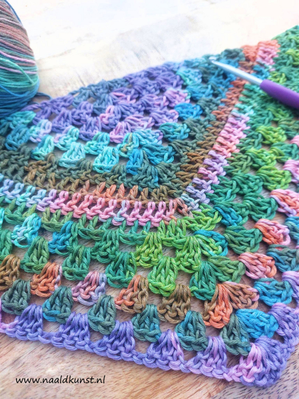 Stola aan het haken van de Gomitolo Alga, en verloopgaren van Lana Grossa.