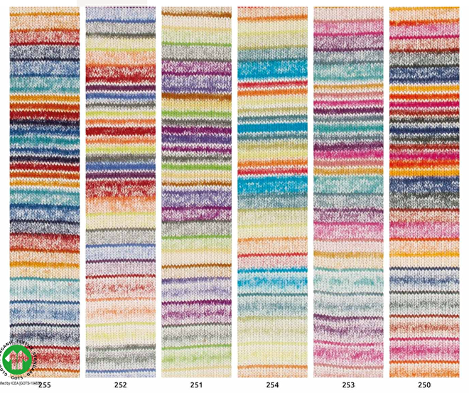 Het garen wat nu verkrijgbaar is voor deze top, is de Arlequino, deze heeft dit verloop: