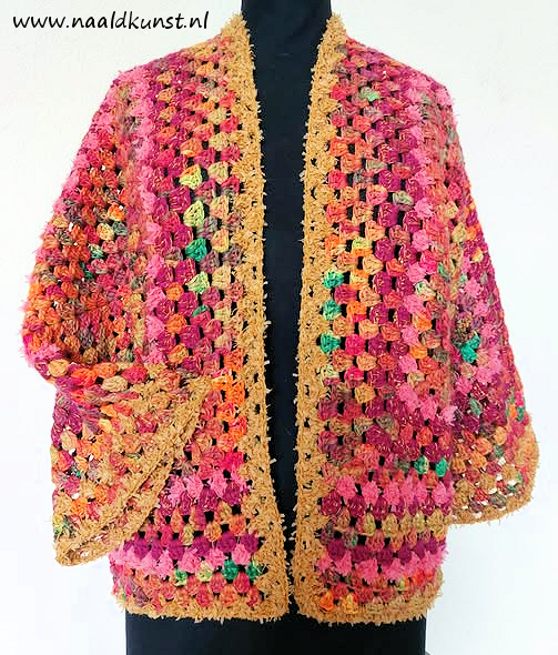 Ik heb het vestje gehaakt van een mix van materialen. Leuk issie geworden he!