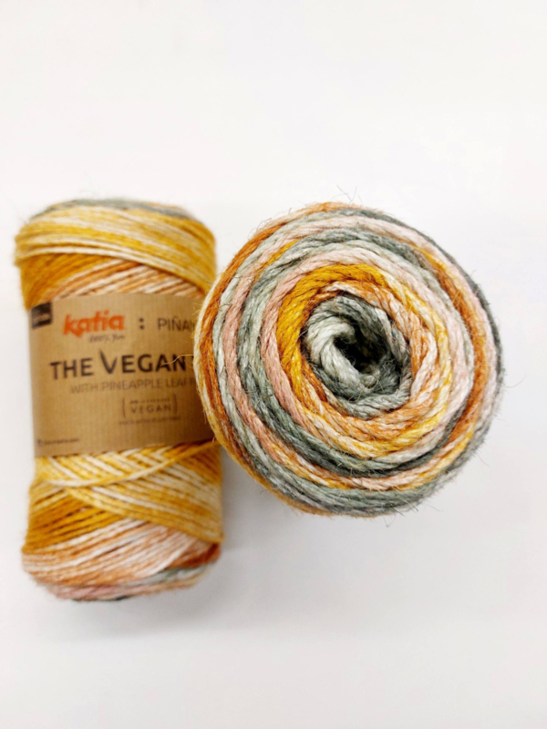 Katia The Vegan Bag Colors is een duurzaam garen met een rustieke uitstraling.Het wordt lokaal geproduceerd met een innovatieve mix van 70% lyocell en 30% vezels van ananasblad.